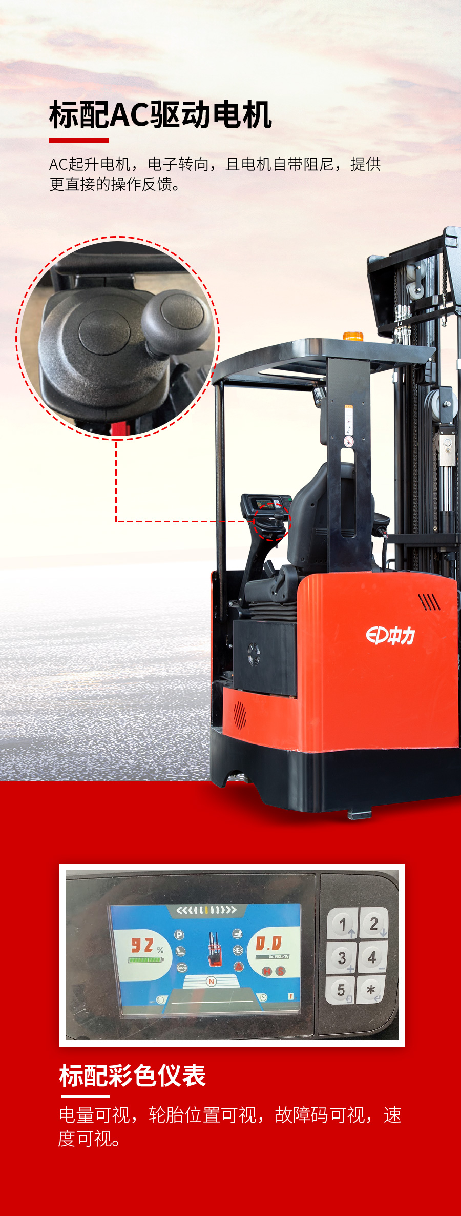 灵活便捷,标配AC驱动电机、AC起升电机、彩色仪表;